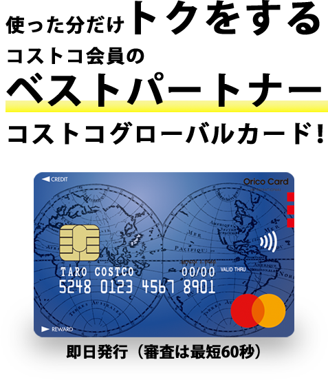 | 商品の特徴 | コストコグローバルカード。コストコグローバルカード。オリコ、コストコビジネス会員のための高還元率ビジネスカード。ちゃぼすいさんのみ、購入可。最上位の会員資格「エグゼクティブ会員」✨ その魅力を会員様に。待ってま〜す♡ | ||